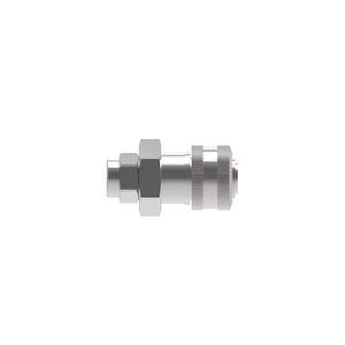 Aeroquip® Coupling, 3RL Series, Connection Type 1: Quick Disconnect, Gender 1: Female, Connection Size 1: 3/8 in, Connection Type 2: NPTF, Gender 2: Female, Connection Size 2: 1/4 in, Thread Size 2: 1/4-18, Hex Size: 1 in, 300 psi, Carbon Steel, Finish: Zinc Trivalent-Plated, Dimensions: 2.29 in L x 1.31 in W, -40 to 250 deg F, For Use With: Compressed Air
