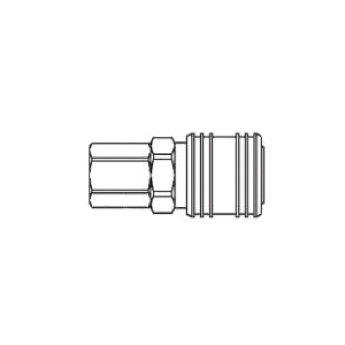 Aeroquip® Industrial Interchange Coupling, 500 Series, Connection Type 1: Quick Disconnect, Gender 1: Female, Connection Size 1: 1/2 in, Connection Type 2: NPTF, Gender 2: Female, Connection Size 2: 3/4 in, Thread Size 2: 3/4-14, Hex Size: 1.19 in, 500 psi, Brass, Finish: Nickel-Plated, Dimensions: 3.09 in L x 1.19 in W, -40 to 250 deg F