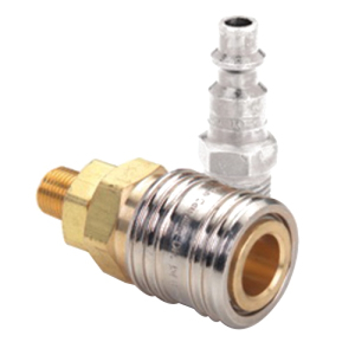 Aeroquip® Industrial Interchange Coupling, 500 Series, Connection Type 1: Quick Disconnect, Gender 1: Female, Connection Size 1: 1/2 in, Connection Type 2: NPTF, Gender 2: Female, Connection Size 2: 3/8 in, 500 psi, Brass, Finish: Nickel-Plated, -40 to 250 deg F
