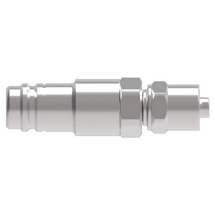 Aeroquip® Coupling Plug, 6000 Series, Connection Type 1: Quick Disconnect, Gender 1: Male, Connection Size 1: 3/4 in, Connection Type 2: NPTF, Gender 2: Female, Connection Size 2: 1/2 in, Thread Size 2: 1/2-14, Hex Size: 1 in, 220 psi, Carbon Steel, Finish: Zinc-Plated, Dimensions: 2.22 in L x 1.15 in W x 1.15 in H, Dimension Standards: ISO 6150 Series B, -40 to 250 deg F