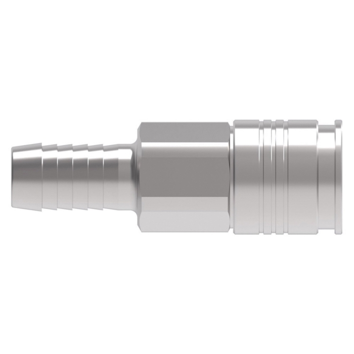 Aeroquip® Coupling, Auto-Flo 23 Series, Connection Type 1: Quick Disconnect, Gender 1: Female, Connection Size 1: 1/4 in, Connection Type 2: Hose Barb, Connection Size 2: 3/8 in, 150 psi, Brass, Dimensions: 2.73 in L x 0.96 in W x 0.96 in H, Dimension Standards: ISO 6150 Series B, -40 to 250 deg F