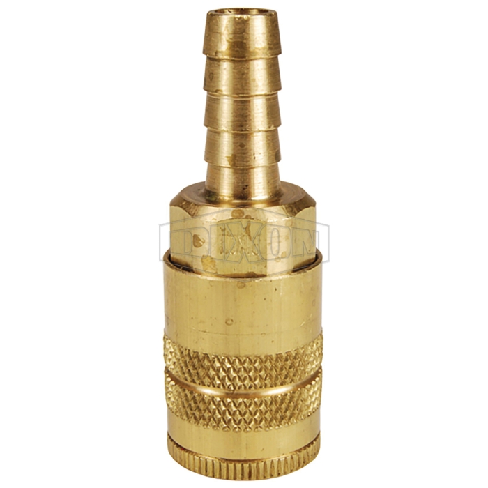 Dixon® Air Chief Semi-Automatic Industrial Interchange Coupler, Connection Type 1: Quick Disconnect, Connection Size 1: 1/4 in, Connection Type 2: Hose Barb, Connection Size 2: 3/8 in, 300 psi, Brass, -40 to 250 deg F