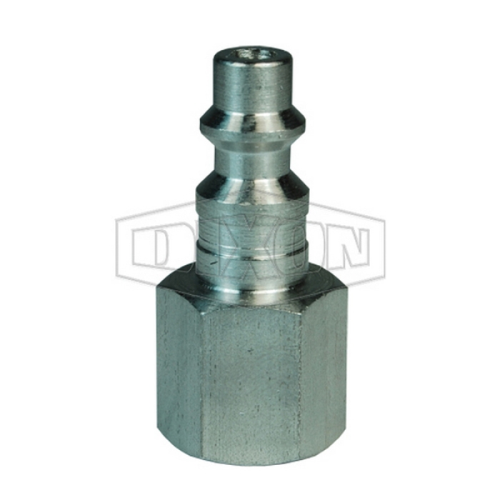 Dixon® Pneumatic Industrial Interchange Plug, DF Series, Connection Type 1: Quick Disconnect, Connection Size 1: 1/2 in, Connection Type 2: NPTF, Gender 2: Female, Connection Size 2: 1/2 in, Thread Size 2: 1/2-14, Hex Size: 1 in, 303 Stainless Steel, Dimensions: 1.16 in OD x 2.27 in L, -40 to 250 deg F