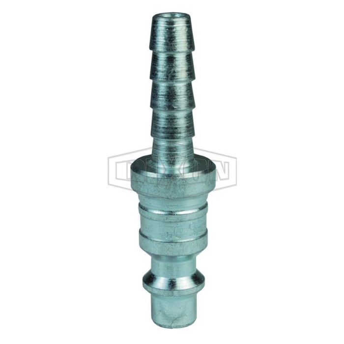 Dixon® Pneumatic Industrial Interchange Plug, DF Series, Connection Type 1: Quick Disconnect, Connection Size 1: 1/2 in, Connection Type 2: Hose Barb, Connection Size 2: 3/8 in, 500 psi, Steel, Finish: Trivalent Chrome-Plated, Dimensions: 0.75 in OD x 2.53 in L, -40 to 250 deg F
