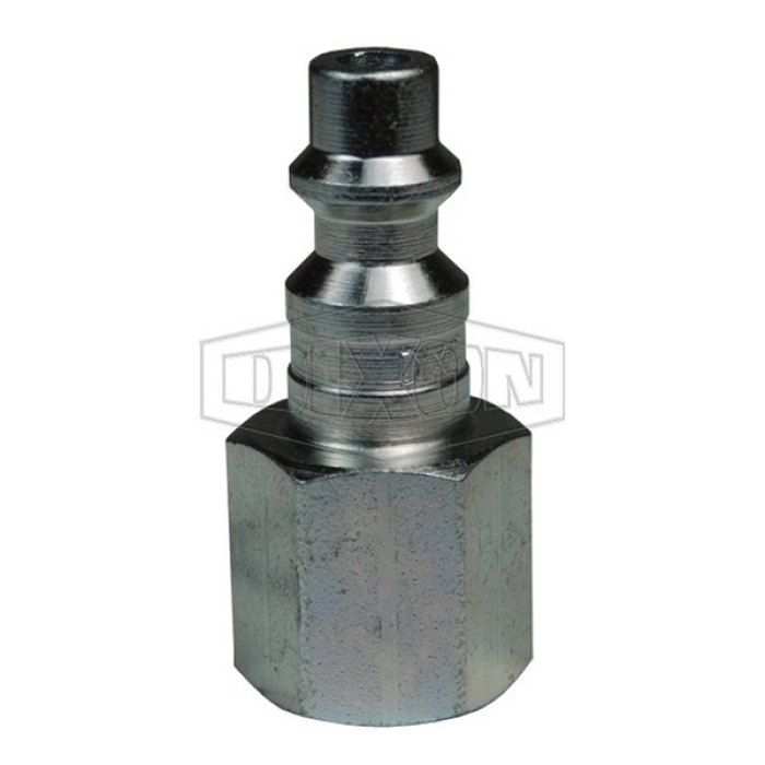 Dixon® Pneumatic Industrial Interchange Plug, DF Series, Connection Type 1: Quick Disconnect, Connection Size 1: 3/8 in, Connection Type 2: NPTF, Gender 2: Female, Connection Size 2: 1/2 in, Thread Size 2: 1/2-14, Hex Size: 1 in, Steel, Finish: Trivalent Chrome-Plated, Dimensions: 1.16 in OD x 1.94 in L, -40 to 250 deg F