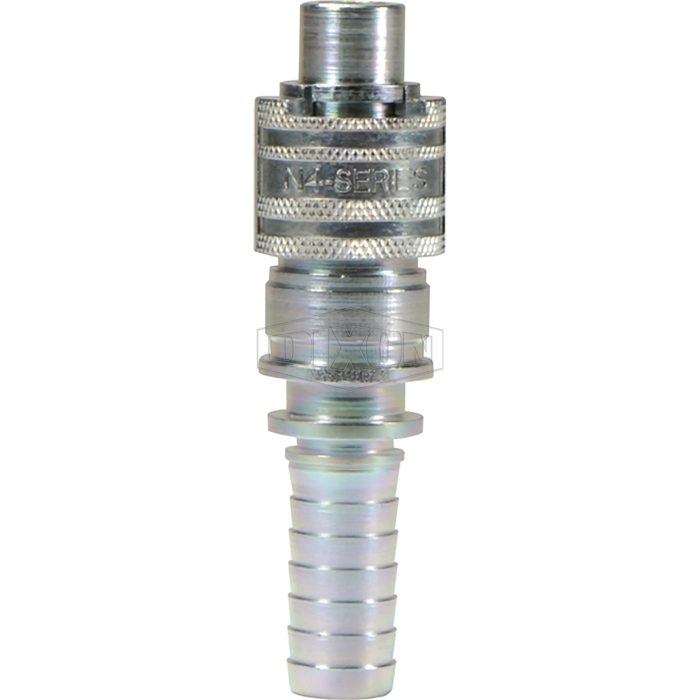 Dixon® Dix-Lock™ Interchange Plug, N Series, Connection Type 1: Quick Disconnect, Gender 1: Male, Connection Size 1: 1/2 in, Connection Type 2: Hose Barb, Connection Size 2: 1 in, Steel, Finish: Trivalent Chrome-Plated, Dimensions: 1.4 in OD x 5.77 in L, -40 to 250 deg F