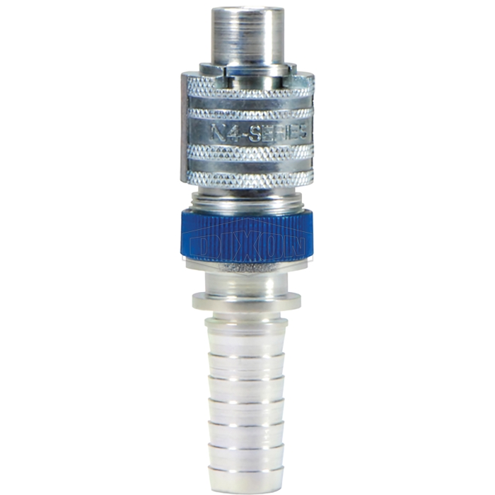 Dixon® Dix-Lock™ Interchange Safety-Lock Plug, N Series, Connection Type 1: Quick Disconnect, Gender 1: Male, Connection Size 1: 1/2 in, Connection Type 2: Hose Barb, Connection Size 2: 1/2 in, Steel, Finish: Trivalent Chrome-Plated, Dimensions: 1.4 in OD x 4.95 in L, -40 to 250 deg F