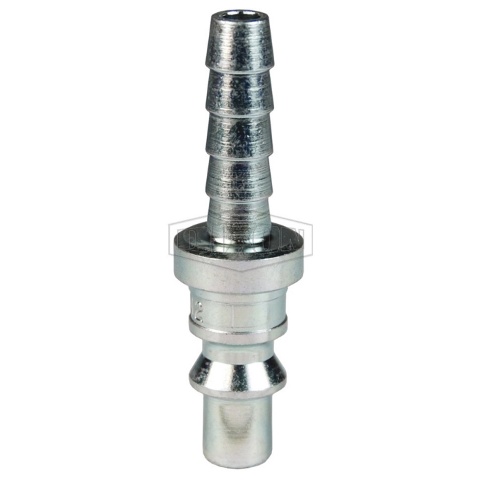 Dixon® ARO Pneumatic Interchange Plug, M Series, Connection Type 1: Quick Disconnect, Connection Size 1: 3/8 in, Connection Type 2: Hose Barb, Connection Size 2: 3/8 in, 300 psi, Steel, Finish: Trivalent Chrome-Plated, Dimensions: 0.88 in OD x 2-1/4 in L, -40 to 250 deg F
