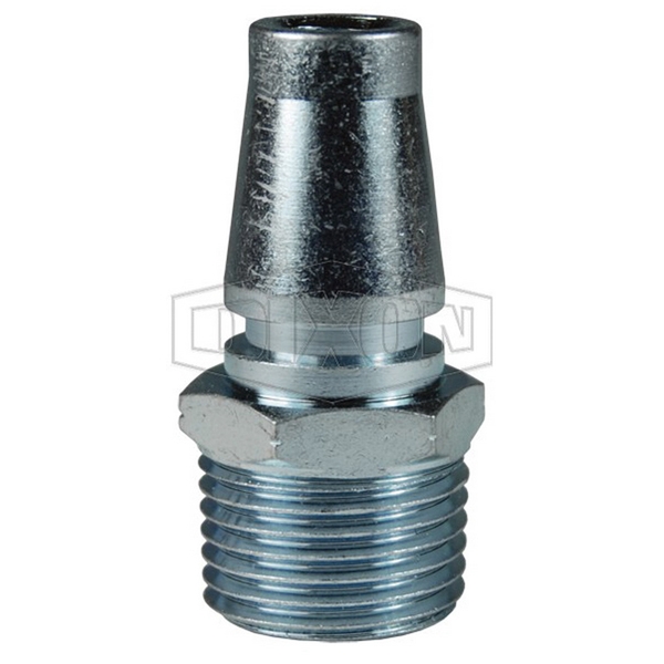 Dixon® Schrader Pneumatic Interchange Plug, SHD Series, Connection Type 1: Quick Disconnect, Connection Size 1: 1/2 in, Connection Type 2: NPT, Gender 2: Male, Connection Size 2: 1/2 in, Hex Size: 7/8 in, 300 psi, Steel, Finish: Trivalent Chrome-Plated, Dimensions: 1.01 in OD x 1.87 in L, -40 to 250 deg F