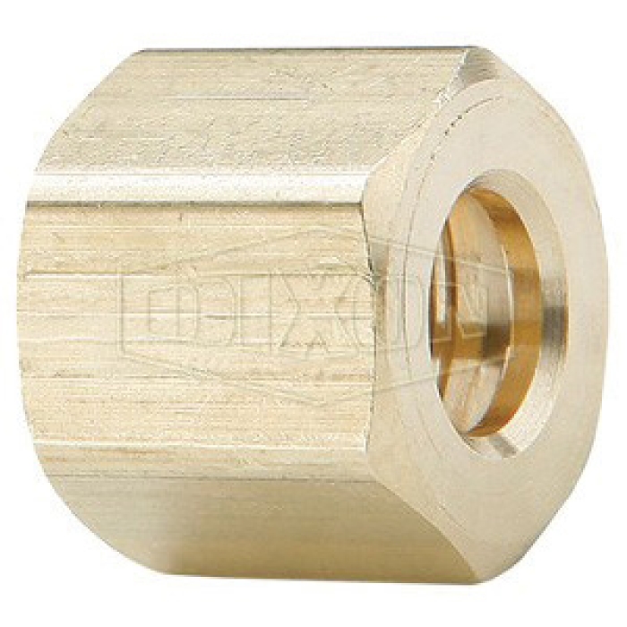 Dixon® Nut, Connection Type 1: Compression, Connection Size 1: 1/4 in, Thread Size 1: 7/16-24, Hex Size: 1/2 in, 300 psi, Brass, Dimensions: 0.44 in L, Dimension Standards: SAE J512, SAE 060110, -65 to 250 deg F