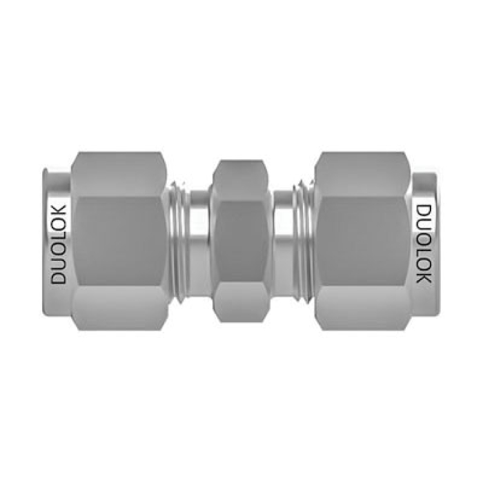 SSP® Duolok® Straight Union, U Series, Connection Type 1: Tube Fitting, Connection Size 1: 6 mm, Connection Type 2: Tube Fitting, Connection Size 2: 6 mm, Hex Size: 14 mm, 316 Stainless Steel, Dimensions: 41 mm L