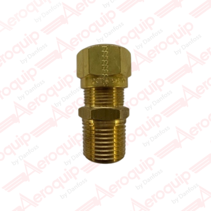 Aeroquip® Straight Air Brake Connector, Connection Type 1: Compression Nylon Tube, Connection Size 1: 5/8 in, Connection Type 2: MPT, Connection Size 2: 3/4-14, Brass, 150 psi, For Use With: Air Brake Tubing, -40 to 200 deg F, Hex Size: 1-1/16 in