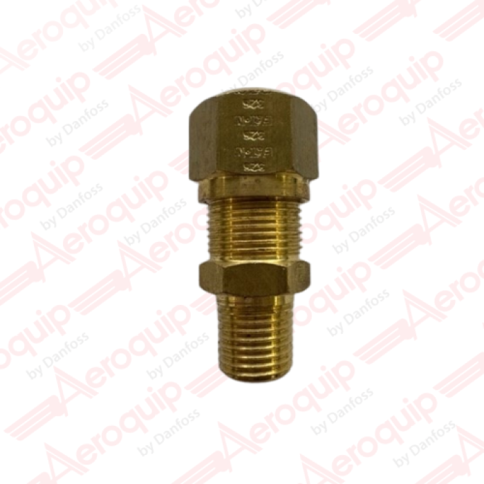 Aeroquip® Straight Air Brake Connector, Connection Type 1: Compression Nylon Tube, Connection Size 1: 1/2 in, Connection Type 2: MPT, Connection Size 2: 3/4-18, Brass, 150 psi, For Use With: Air Brake Tubing, -40 to 200 deg F, Hex Size: 11/16 in