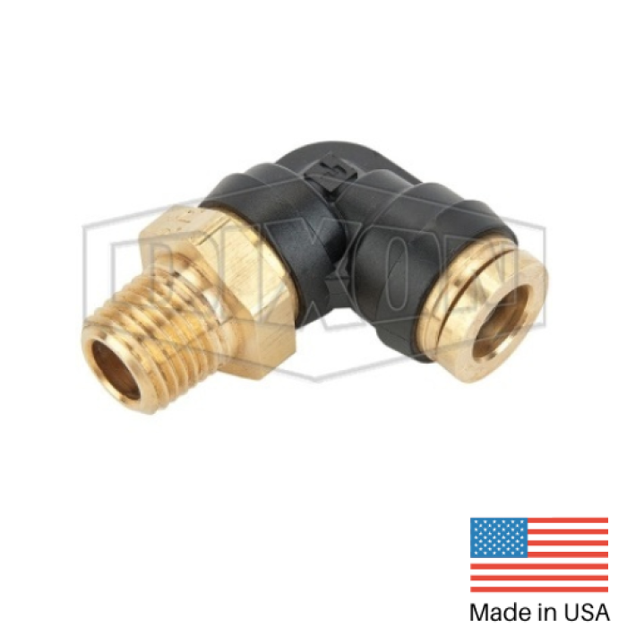 Dixon® Legris Elbow, Connection Type 1: Push-to-Connect, Connection Size 1: 3/8 in, Connection Type 2: NPT, Gender 2: Male, Connection Size 2: 1/4 in, 250 psi, Composite, Dimension Standards: SAE J1131, J2494, J2494-3, -40 to 200 deg F