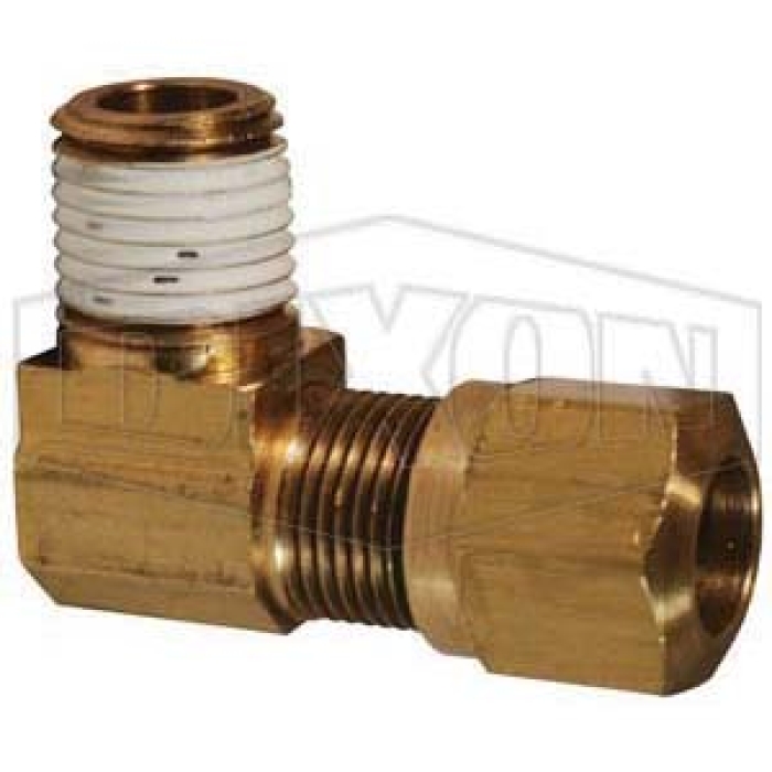 Dixon® Air Brake Elbow, Connection Type 1: Tube, Connection Size 1: 3/4 in, Thread Size 1: 1-18, Connection Type 2: Threaded, Gender 2: Male, Connection Size 2: 1/2 in, 150 psi, Brass, Dimension Standards: SAE J246, SAE 100202 BA, -40 to 200 deg F, For Use With: SAE J844 Type A and B Tubing