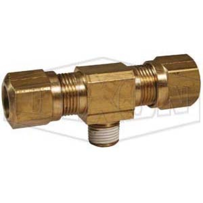 Dixon® Air Brake Branch Tee, Connection Type 1: Tube, Connection Size 1: 1/2 in, Thread Size 1: 11/16-20, Connection Type 2: Tube, Connection Size 2: 1/2 in, Thread Size 2: 11/16-20, Connection Type 3: Threaded, Gender 3: Male, Connection Size 3: 3/8 in, 150 psi, Brass, Dimension Standards: SAE J246, SAE 100425 BA, -40 to 200 deg F, For Use With: SAE J844 Type A and B Tubing