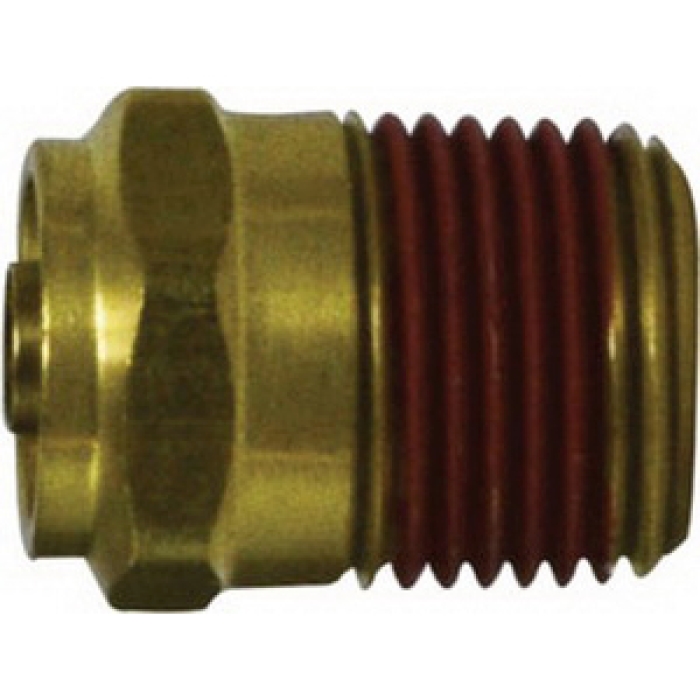 Midland Metals Connector, Connection Type 1: Push-to-Connect, Connection Size 1: 5/8 in, Connection Type 2: NPTF, Gender 2: Male, Connection Size 2: 3/8 in, 150 psi, Brass, Dimension Standards: SAE J1131, -40 to 200 deg F
