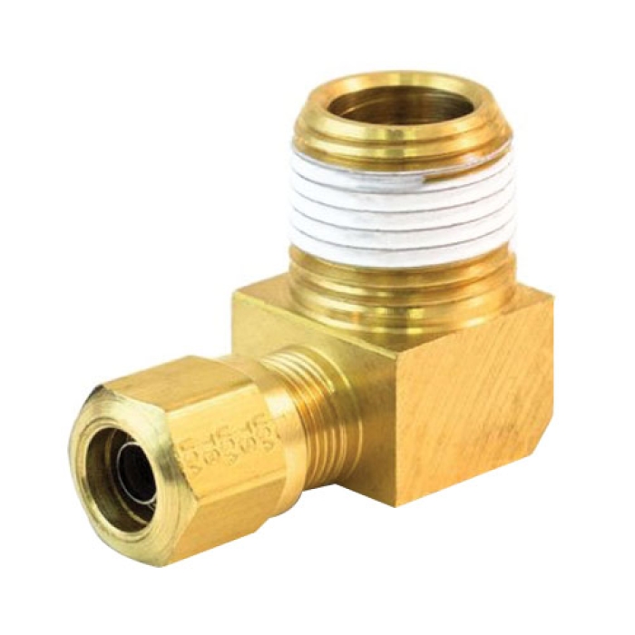 Tramec Sloan Compression Air Brake Elbow, S769AB Series, Connection Type 1: Tube, Connection Size 1: 1/2 in, Connection Type 2: MNPT, Connection Size 2: 3/8 in, Brass, 150 psi, For Use With: SAE J844 Nylon Air Braked Tubing, -40 to 200 deg F