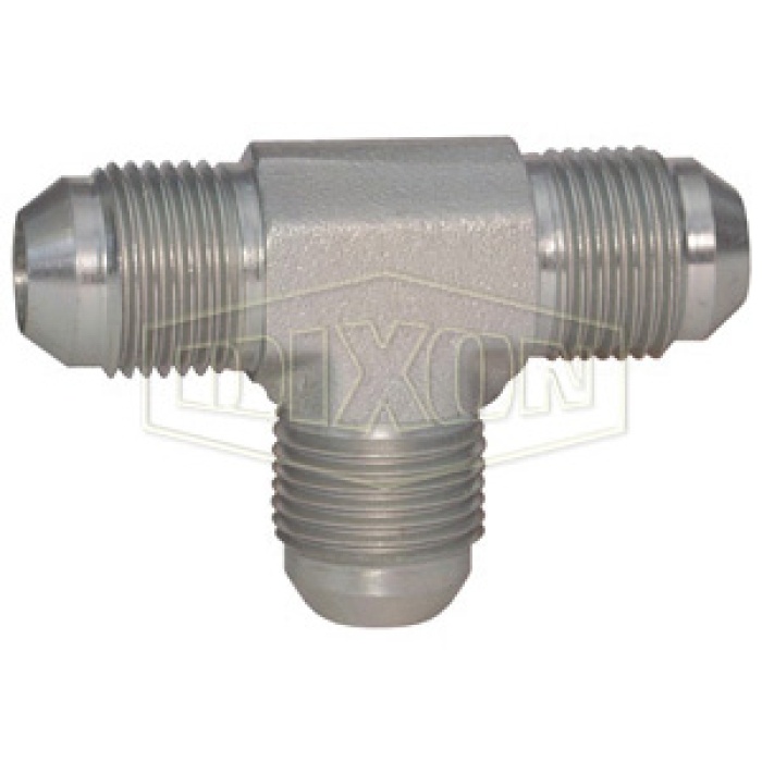 Dixon® Union Tee, Connection Type 1: 37 deg JIC Flare, Gender 1: Male, Connection Size 1: 9/16 in, Thread Size 1: 9/16-18, Connection Type 2: 37 deg JIC Flare, Gender 2: Male, Connection Size 2: 9/16 in, Thread Size 2: 9/16-18, Connection Type 3: 37 deg JIC Flare, Gender 3: Male, Connection Size 3: 9/16 in, Thread Size 3: 9/16-18, 5000 psi, Steel, Finish: Zinc-Plated, Dimension Standards: SAE 070401