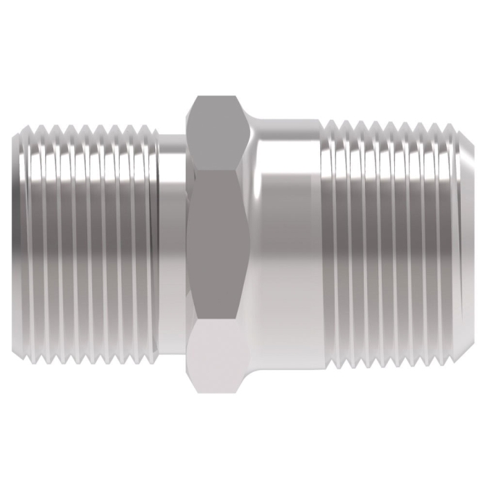 Aeroquip® Ermeto® Straight Connector, 7205x Series, Connection Type 1: Flareless Tube, Gender 1: Male, Connection Size 1: 1 in, Thread Size 1: 1-5/16-12, Connection Type 2: NPTF, Gender 2: Male, Connection Size 2: 1 in, Thread Size 2: 1-11-1/2, Hex Size: 1-3/8 in, Carbon Steel, Finish: Dura-Kote, Dimensions: 2.07 in L x 1.375 in W x 1.375 in H, Dimension Standards: SAE 080102