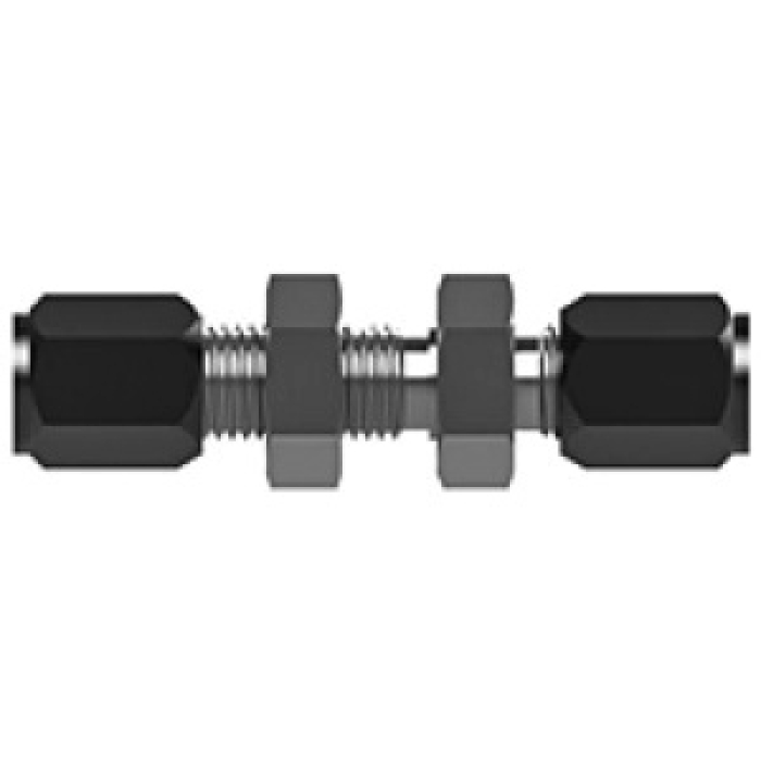 SSP® Bulkhead Straight Union, Series: AM-BU, Connection Type 1: Tube Fitting, Connection Size 1: 1/4 in, Thread Size 1: 7/16-20, Connection Type 2: Tube Fitting, Connection Size 2: 1/4 in, Hex Size: 11/16 in, 6000 psi, 316 Stainless Steel, Dimensions: 2.73 in L