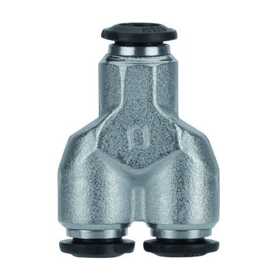 AIGNEP Union Wye, 50N Series, Connection Type 1: Push-to-Connect, Connection Size 1: 10 mm, Connection Type 2: Push-to-Connect, Connection Size 2: 10 mm, Connection Type 3: Push-to-Connect, Connection Size 3: 10 mm, Hex Size: 18 mm, 290 psi, Brass, Finish: Nickel-Plated, Dimensions: 48 mm L, 0 - 160 deg F, For Use With: Nylon, Polyethylene, Polyurethane, and Copper Tubing