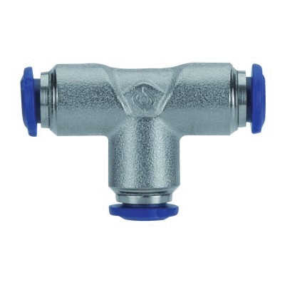 AIGNEP Union Tee, 88 Series, Connection Type 1: Push-to-Connect, Connection Size 1: 5/16 in, Connection Type 2: Push-to-Connect, Connection Size 2: 5/16 in, Connection Type 3: Push-to-Connect, Connection Size 3: 5/16 in, 290 psi, Brass, Finish: Nickel-Plated, Dimensions: 45 mm L, 0 - 160 deg F, For Use With: Nylon, Polyethylene, Polyurethane, and Copper Tubing