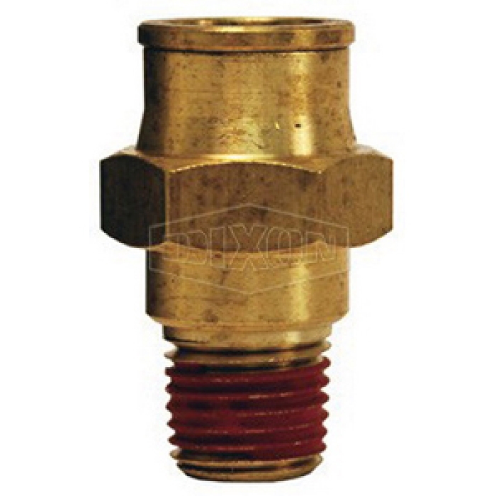 Dixon® Connector, Connection Type 1: Push-to-Connect, Connection Size 1: 5/32 in, Connection Type 2: NPTF, Gender 2: Male, Connection Size 2: 1/8 in, Forged Brass, -10 to 200 deg F