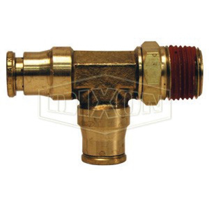 Dixon® Swivel Run Tee, Connection Type 1: Push-to-Connect, Connection Size 1: 5/32 in, Connection Type 2: Push-to-Connect, Connection Size 2: 5/32 in, Connection Type 3: NPTF, Gender 3: Male, Connection Size 3: 1/8 in, Forged Brass, -10 to 200 deg F