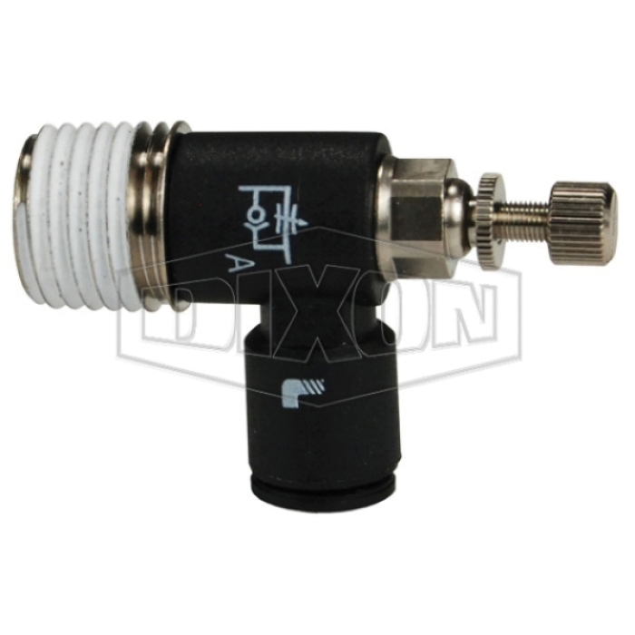 Dixon® Legris Miniature Exhaust Flow Control Valve, Connection Type 1: Push-to-Connect, Connection Size 1: 1/4 in, Connection Type 2: NPT, Connection Size 2: 1/8 in, 15 - 145 psi, Nylon, 30 - 158 deg F