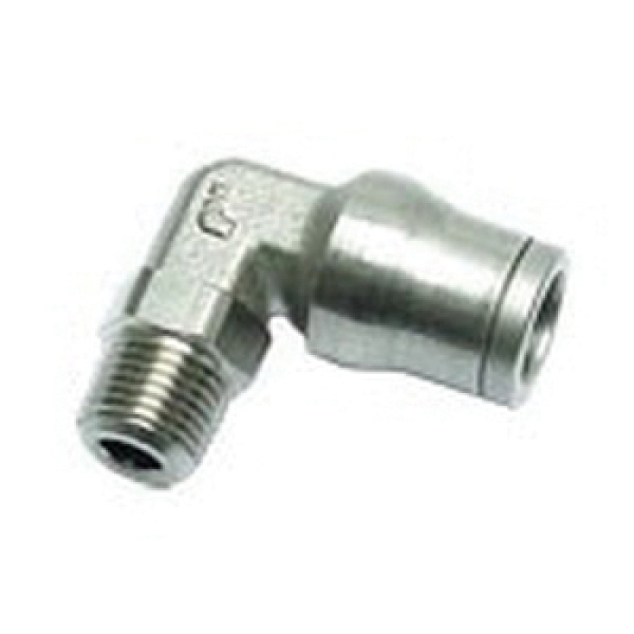 Legris Thread Sealant 90 deg Equal Stud Elbow, 3609 Series, Connection Type 1: Push-to-Connect, Connection Size 1: 1/2 in, Connection Type 2: BSPT, Gender 2: Male, Connection Size 2: 1/2 in, Hex Size: 22 mm, 290 psi, Brass, Finish: Nickel-Plated, -13 to 302 deg F