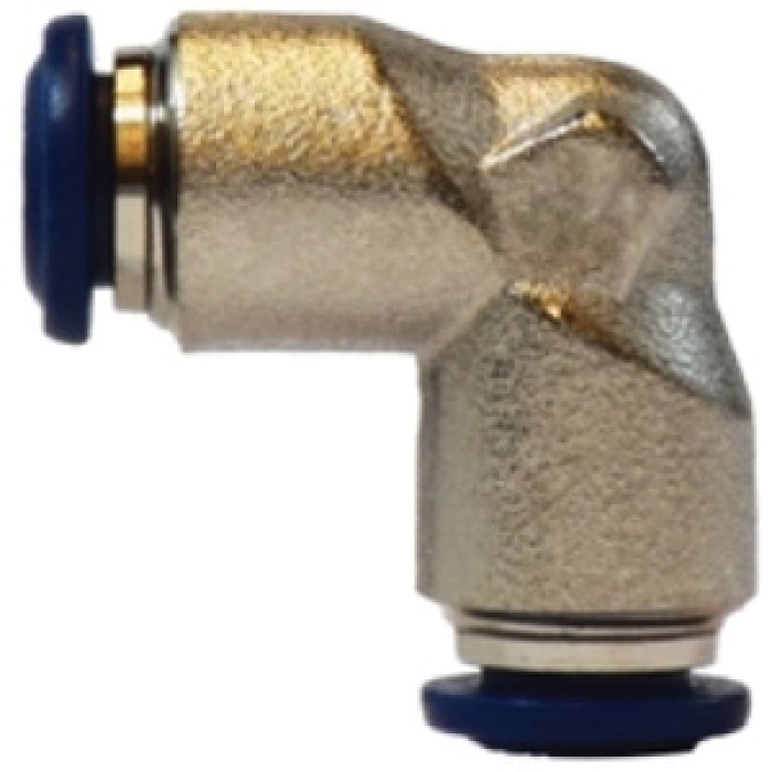 Midland Metals 90 deg Union Elbow, Connection Type 1: Push-to-Connect, Connection Size 1: 1/4 in, Connection Type 2: Push-to-Connect, Connection Size 2: 1/4 in, 290 psi, Brass, Finish: Nickel-Plated, -4 to 176 deg F, For Use With: Nylon, Polyethylene, and Polyurethane Tubing