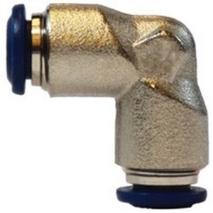 Midland Metals 90 deg Union Elbow, Connection Type 1: Push-to-Connect, Connection Size 1: 3/8 in, Connection Type 2: Push-to-Connect, Connection Size 2: 3/8 in, 290 psi, Brass, Finish: Nickel-Plated, -4 to 176 deg F, For Use With: Nylon, Polyethylene, and Polyurethane Tubing