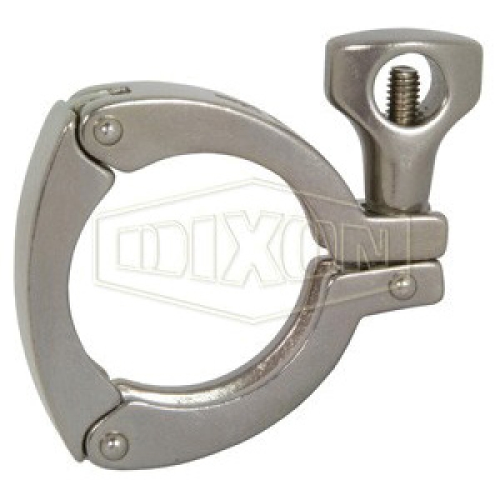 Dixon® 3-Segment Sanitary Clamp, 13MHHM-3P Series, Nominal Size: 4 in, Locking Style: Wing Nut, Torque Rating: 25 in-lb, 304 Stainless Steel, 6.1 in Width, 0.8 in Thickness