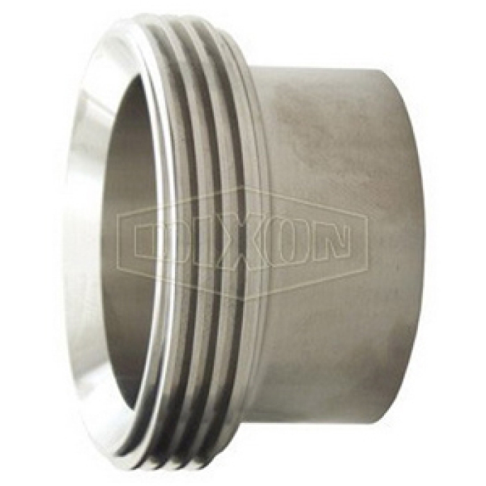Dixon® Long Threaded Bevel Seat Weld Ferrule, 15A Series, Connection Size 1: 3 in, 304 Stainless Steel, Dimensions: 3.58 in L