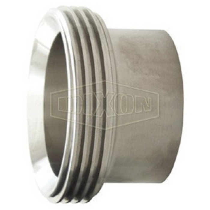 Dixon® Long Threaded Bevel Seat Weld Ferrule, 15A Series, Connection Size 1: 4 in, 304 Stainless Steel, Dimensions: 4.7 in L