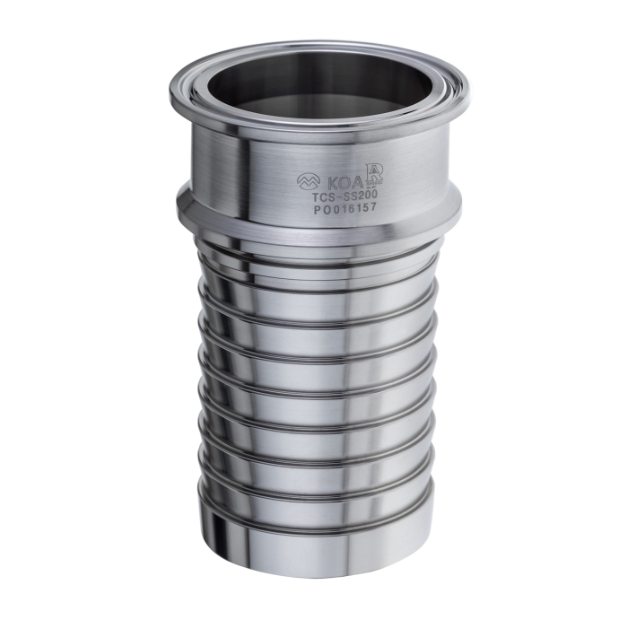 Kuriyama Sanitary Clamp Fittings™ Crimp Fitting, TCS-SS Series, Connection Type 1: Hose, Connection Size 1: 3 in, Connection Type 2: Fitting, Connection Size 2: 3 in, 316 Stainless Steel, For Use With: KOA Sanitary and Standard Kuri-Krimp Ferrules