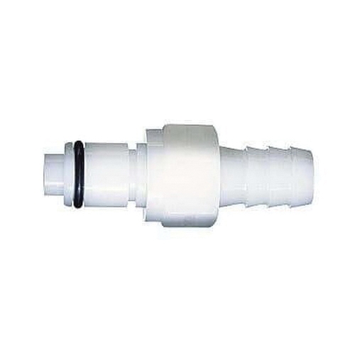 CPC Straight-Through Non-Valved In-Line Coupling Insert, Connection Type 1: Quick Disconnect, Connection Size 1: 1/4 in, Connection Type 2: Hose Barb, Connection Size 2: 1/4 in, 120 psi, Acetal, Finish: Natural, White, Dimensions: 1.35 in L, -40 to 180 deg F