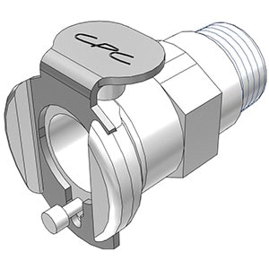 CPC Valved Coupling Insert, Connection Type 1: Quick Disconnect, Connection Size 1: 1/8 in, Connection Type 2: NPT, Gender 2: Male, Connection Size 2: 1/8 in, 120 psi, Acetal, Finish: Natural, White, Dimensions: 1 in L x 0.79 in W, -40 to 180 deg F