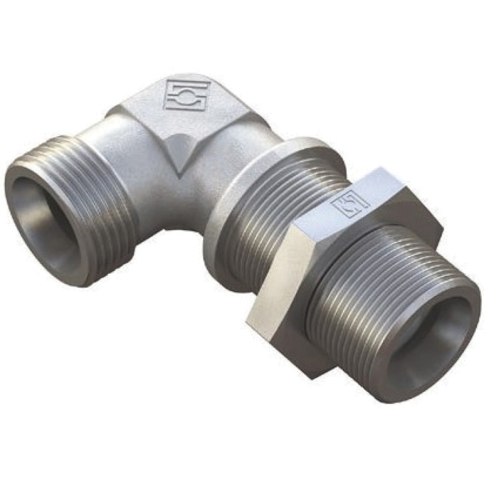 Stauff® FI-WS Body Bulkhead Elbow, S Series, Connection Type 1: Tube, Connection Size 1: 20 mm, Connection Type 2: Tube, Connection Size 2: 20 mm, 400 bar, Steel, Finish: Zinc/Nickel-Plated, Dimensions: 36 mm L