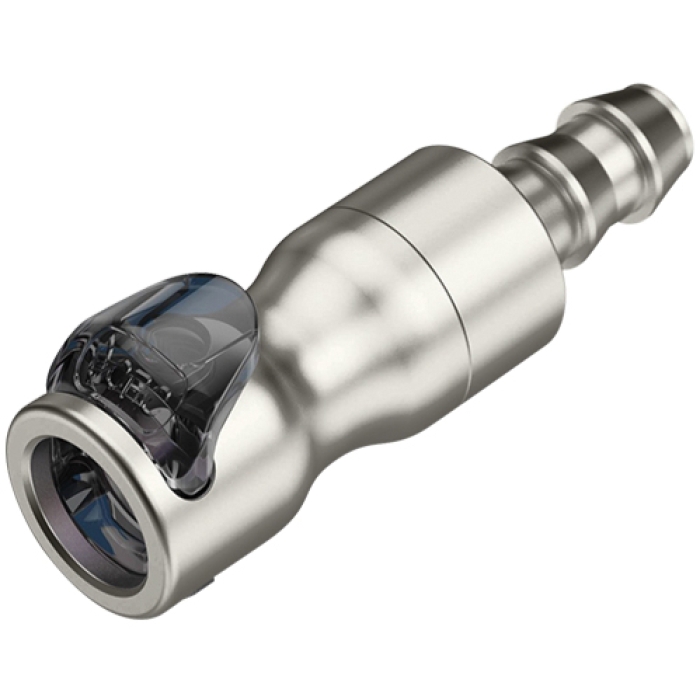 CPC® Valved Coupling Body, LQ4S Series, 1/4 x 3/8 in Connection, Quick Disconnect x Lock-On Hose Barb, Material Construction: 303 Stainless Steel, Passivated, Metallic, 0.97 in Dia x 2.71 in L, 120 psi Maximum Operating Pressure, 0 to 240 deg F Operating Temperature, 3 gpm Flow Rate, 1.4 Cv Flow Coefficient, In-Line Mount, EPDM Seal, Stainless Steel Valve Spring
