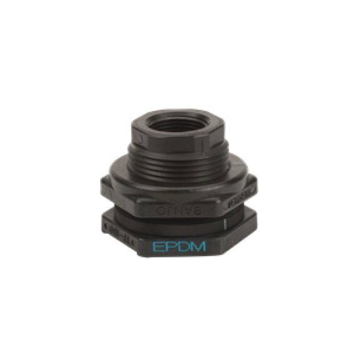 Banjo® Bulkhead Tank Fitting with EPDM Gasket, Size: 1 in, 2-9/16 in Length, Polyethylene, 300 psi