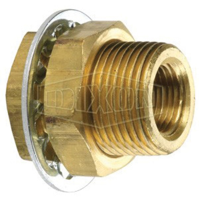 Dixon® Bulkhead Anchor Coupling, Connection Type 1: NPTF, Gender 1: Female, Connection Size 1: 3/8 in, Connection Type 2: External Threaded, Gender 2: Male, Connection Size 2: 1 in, Thread Size 2: 1-14 UNS, Brass, Dimensions: 1.31 in L