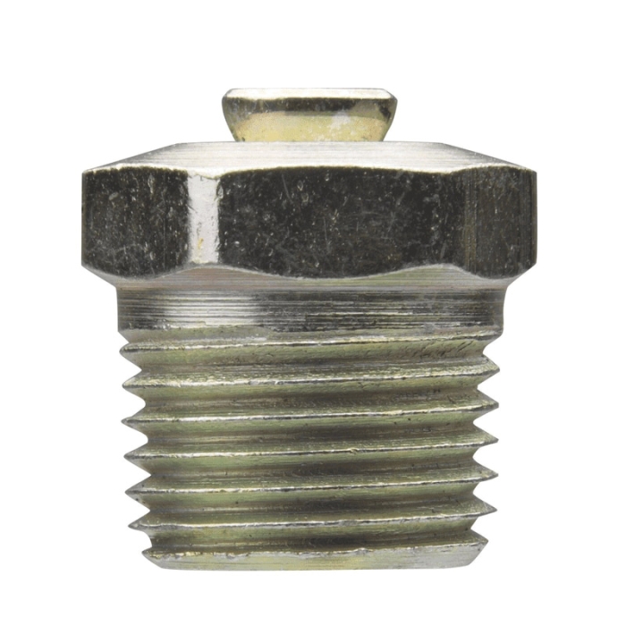 Alemite® Threaded Relief Fitting, Connection Size 1: 1/8 in, Connection Type 1: SAE PTF, Finish: Trivalent Zinc-Plated, 19/64 in Length Shank, 3/16 in Length Thread, Hex Size: 7/16 in, 1 - 5 psi, 1/2 in Length