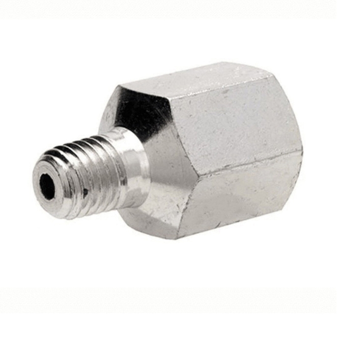 Alemite® Adapter, Connection Size 1: 1/4-28, Connection Type 1: Male SAE Taper Threaded, Connection Size 2: 1/8 in, Connection Type 2: Male SAE Threaded, Steel, Style: Straight