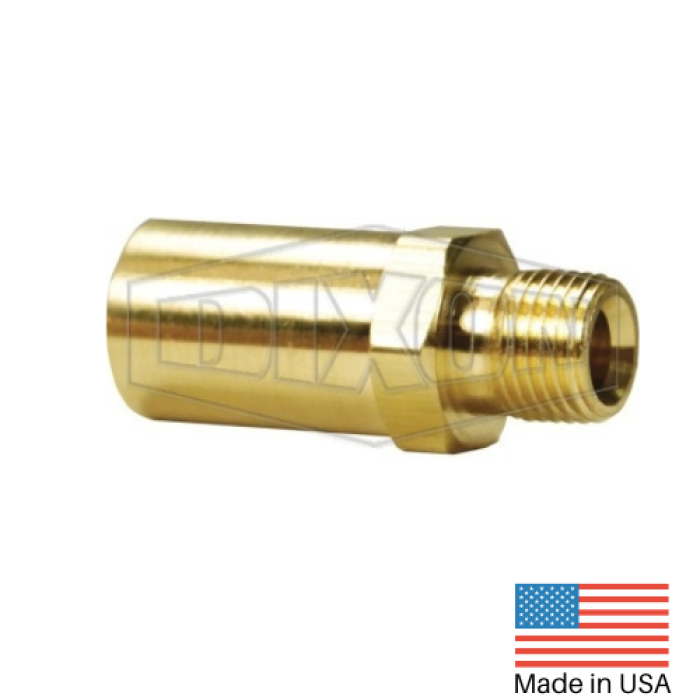 Dixon® Grease Whip Chamfered Base Hose Fitting, Connection Size 1: 3/16 in, Connection Type 1: Crimp, Connection Size 2: 1/8 in, Connection Type 2: MPT, Brass