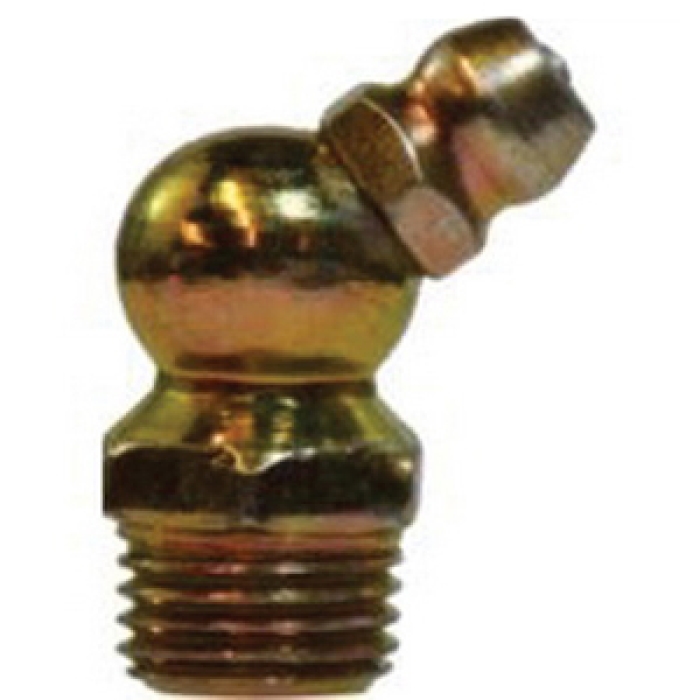 Midland Metals 45 deg Grease Fitting, Connection Size 1: M10 x 1, Brass, 21 mm Height, 3.7 mm Length Thread, Hex Size: 11 mm