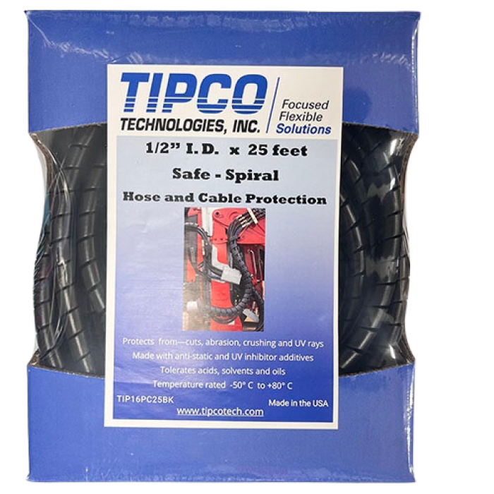Safeplast Spiral Wrap, Nominal Size: 1/2 in, 1/2 in ID, 0.67 in OD, 25 ft Length, Polyethylene, Black, -58 to 212 deg F
