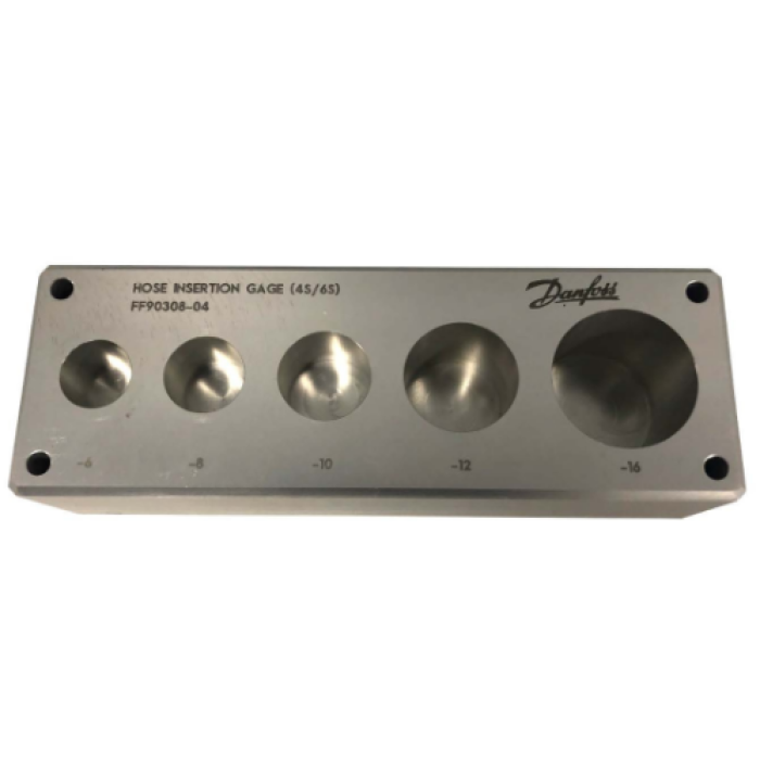 Insertion gauges are used to measure the depth of the hose fitting within the hose. The gauge is inserted into the hose, and the fitting is then inserted until it reaches the proper depth. Using an insertion gauge helps to ensure that the fitting is inserted at the correct depth and that the hose assembly is properly crimped.