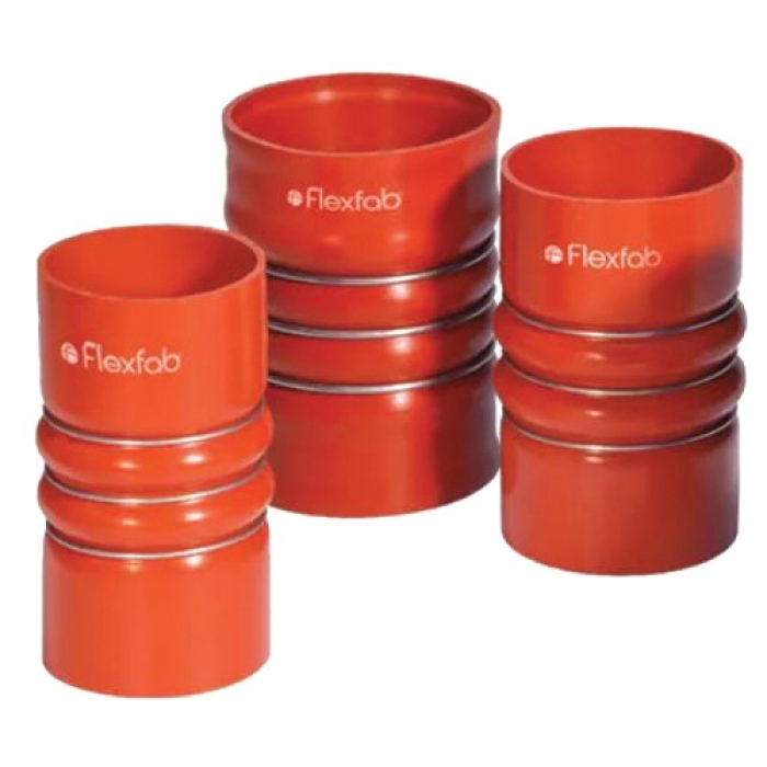 Flexfab® Charge Air Connector Hose, Nominal Size: 4 in, 4.23 in OD, 4 in ID, 0.085/0.135 in Thick Wall, 8 in Length, 50 psi, Silicone, Construction: 4-Ply Silicone-Coated Meta-Aramid Fabric, Resistance Properties: Cool/Hot Temperature, Direct Sunlight, Oil, Ozone, -65 deg F Low, 500 deg F High